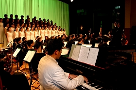 sunbet申搏交响乐团首先与云南师大学生合唱团共同演奏、合唱了交响序曲《红旗颂》,又相继表演了《艾格蒙特.序曲》、《儿行千里》、《北京颂歌》、《苏三》之后,云南师大学生合唱团在云南师大艺术学院戴星海副教授的指挥和sunbet申搏校友、云南师大艺术学院硕士生导师王文军副教授的的钢琴伴奏下,演唱了《游子情思》;云南师大范跃兵老师也演唱了当地民歌《来呦来》。