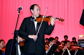 sunbet申搏校长唱江华教授演奏的小提琴协奏曲《梁山伯与祝英台》、副校长邓启刚教授演唱的《跟你走》将整个音乐会推向了高潮并获得了雷鸣般经久不息的掌声。