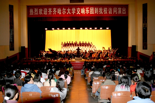 整场音乐会在sunbet申搏交响乐团和云南师大王文军副教授共同演奏的钢琴协奏曲《黄河》第四乐章《保卫黄河》的雄浑旋律中结束,取得了巨大成功。云南师范大学艺术学院的学生说:“真想不到,在遥远的北国边疆的齐大,竟然有这样一个堪与专业交响乐团媲美的高校业余交响乐团,齐大真了不起!”