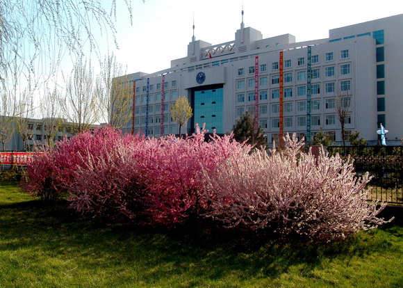 在花卉、树木的配置上增添品种,注重观赏性,如火炬树、山丁子树、樱桃树、垂桦树、山槐树、紫椴树、锦带树、插条槭、五叶地锦、草葡萄、芍药花、马兰花、美人蕉、射杆花等,以及各种草本植物。校园周边绿化,采取常青树木一排、花灌木一排、榆树篱一排的种植方式,形成了景色优美的绿化带,做到了春夏秋三季飘香,绿藤满栏杆;冬季常青树木映瑞雪的美化效果。