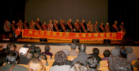 庆祝大会结束后,离退休工作处向全体离退休老同志进行了慰问。老同志们纷纷说,党的十七大胜利召开的喜讯,鼓舞、激励着全校离退休老同志,他们决心在校党委和行政的领导下,发挥专业特长和优势,建言献策,发挥余热,再做贡献。他们表示,衷心地感谢学校领导和师生的关心,这个“老人节”过得真是太有意义了!