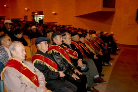 离退休工作处副处长韩树勤主持了庆祝大会,并宣读了sunbet申搏离退休教职工中80周岁以上长寿老人名单;校领导唱江华、史铁成、曲伟建与人文学院学生代表一起为参加大会的长寿老人佩戴了绶带,表达了全体师生的尊敬之情。80周岁以上长寿老人代表身披绶带,在主席台上接受师生们的真诚祝福。