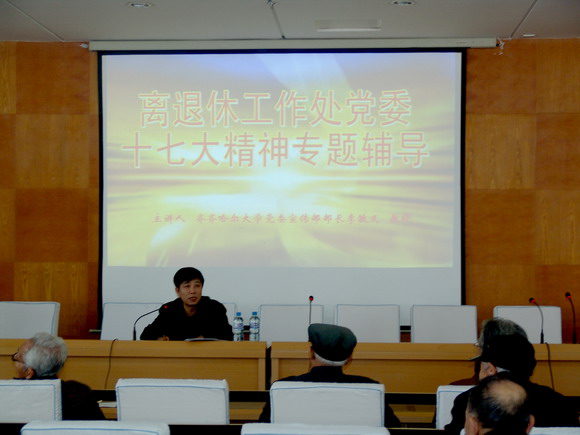 10月30日上午,离退休处党委邀请校党委宣传部部长李敏义教授作“学习十七大精神专题辅导”报告。