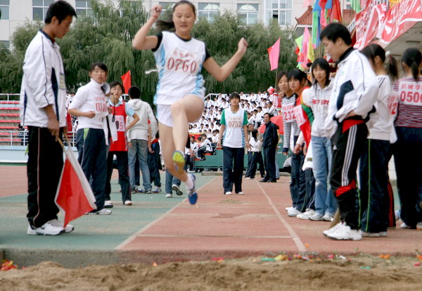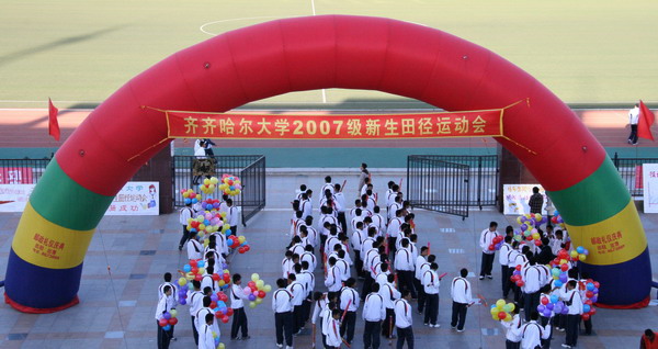 “生命在于运动,健康在于锻炼”。本次田径运动会既是对2007级新生的一次大检阅,也是为新生展示自我形象搭建的一个大舞台。同学们赛场上表现出来的不怕困难、顽强拼搏、团结向上、勇于进取的精神,不仅是本次赛会圆满成功的重要保证,也充分反映了2007级全体新同学的良好素质和精神面貌,是一次团结的大会、胜利的大会,也是一次承上启下、继往开来的体育盛会。