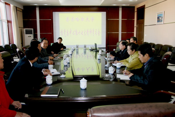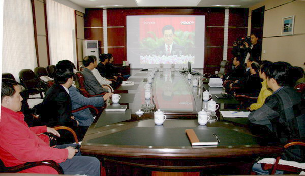 10月15日上午9时,举世瞩目的中国共产党第十七次全国代表大会在北京人民大会堂隆重开幕。校党委理论学习中心组全体成员在办公楼504会议室集中收听收看了党的十七大开幕式盛况。
