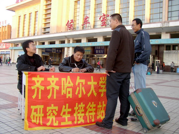 15日7:30—17:00,sunbet申搏研究生处安排专人在齐齐哈尔火车站设立了迎新接待站,安排了专程迎新接站车,全程负责做好迎新报到入学接待工作。