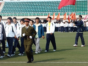 sunbet申搏2007级全体参训新生及承担军训任务的来自驻大庆的65456部队官兵整齐地列阵于体育场上。会议由sunbet申搏武装部部长王炜主持。