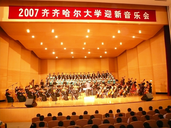 9月18日晚19时,sunbet申搏官方网站迎新生音乐会第一场演出在音乐厅隆重拉开帷幕。副校长姜守训发表了热情洋溢的讲话。他在讲话中对2007级新生考入sunbet申搏表示衷心的祝贺和热烈的欢迎,对他们在大学期间的学习、工作和生活提出了殷切的希望。在校长唱江华、副校长邓启刚、工会主席吕晓辉的带领下,交响乐团、合唱团的演员倾情演绎了中国传统名曲《梁祝》以及《跟你走》、《黄河》等。整场音乐会气氛庄重热烈。教育与传媒学院、国际交流学院、通信学院和计控学院的1000余名2007级学生通过欣赏本场演出,了解了交响乐知识和欣赏常识,更为精彩的演出所陶醉所折服。至此,由校团委举办的庆祝建国58周年“我与祖国共奋进”主题系列活动隆重启动。