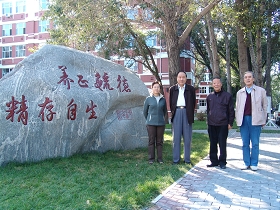 9月21日上午10:00,黑龙江省老科协常务副会长、原省教育厅副厅长童明英老先生来访sunbet申搏。sunbet申搏党委副书记王凤琴,老科协会长张元士、副会长薛秉昌亲自在校门口迎接童老先生的到来并在校门口镌刻有sunbet申搏校训的巨石前合影留念。