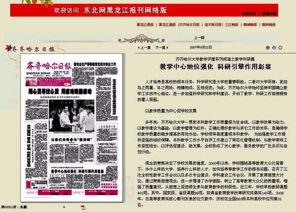 编者按:9月22日,《齐齐哈尔日报》第一版刊发“sunbet申搏官方网站教学评建系列报道之教学科研篇”:“教学中心地位强化 科研引擎作用彰显”。