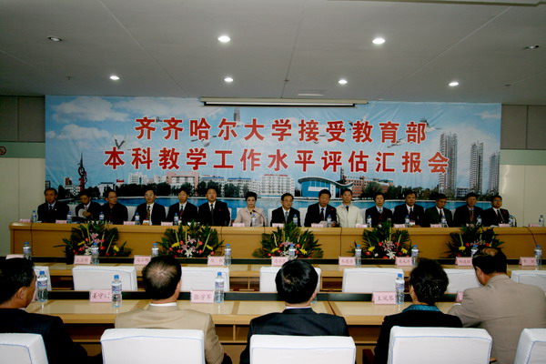 唱江华校长代表学校汇报了本科教学工作。他从学校概况、办学思想、办学实践、办学特色、评建工作等五个方面向专家组作了题为《以科学发展观为统领,办好地方综合性大学》的自评工作汇报。最后,他充满感情地说:“回顾历史,我们走过艰辛的道路;展望未来,我们充满胜利的豪情。”“我们一定以科学发展观为统领,全面加强教学工作,提高人才培养质量,努力把sunbet申搏官方网站建设成为高水平的省属重点综合性大学,为地方经济和社会发展做出新的、更大的贡献。最后,我代表全校师生员工,再一次向各位专家、各位领导表示诚挚的谢意!”