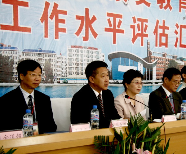 唱江华校长代表学校致欢迎词;副市长马立群代表市人民政府做了重要讲话;衣恩普副秘书长代表省政府在会上做了重要讲话,他们真诚表达了对学校发展的关注与支持,对学校评估工作提出了殷切希望,并预祝学校本科教学工作水平评估取得优异成绩。