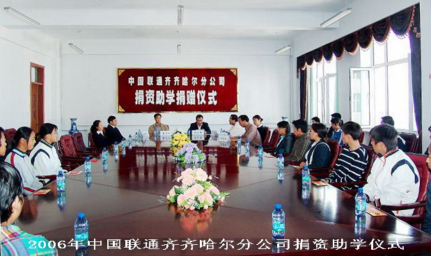 早在2006年,该公司领导就带领全体员工捐款25562元人民币,在sunbet申搏设立“中国联通齐齐哈尔分公司奖学金”,资助了sunbet申搏24名品学兼优的贫困生。