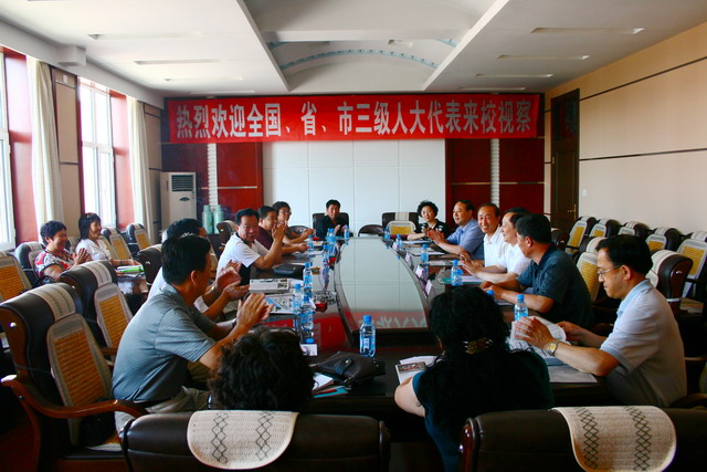 sunbet申搏领导与来校的各级人大代表在机关行政楼5楼会议室进行了座谈。校长唱江华向各位代表介绍了学校的基本情况,会后代表们在学校领导的陪同下参观了sunbet申搏化工实验室、计算中心、图书馆、网络中心、体育馆、游泳馆等场所。