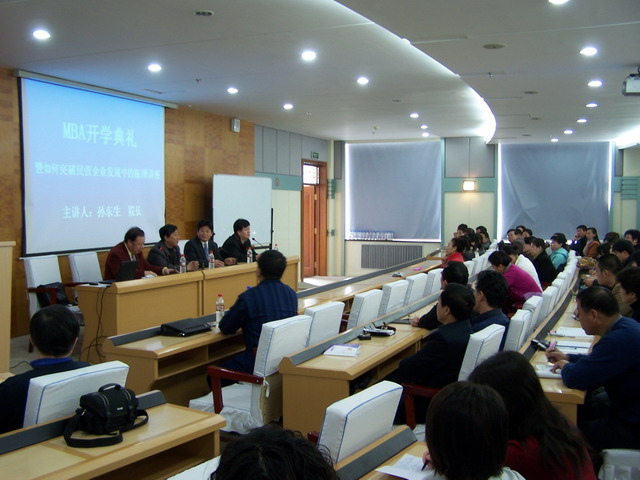 典礼在sunbet申搏西主七楼学术报告厅举行,与会人员包括我院师生及齐市企业界人士。经管学院党委书记李玉山同志、副院长王维同志参加了开幕仪式并分别作了讲话,教师代表和学员代表均作了发言。简短的开学仪式结束后,本届MBA学员们认真听取了由孙东生教授为他们主讲的第一次讲座。