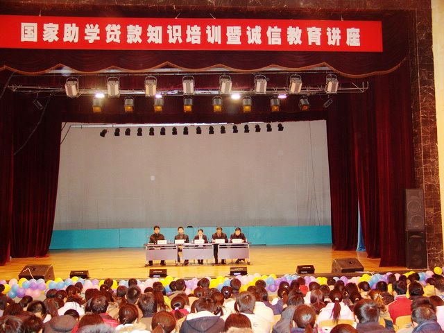 为进一步落实国家助学贷款政策,推动国家助学贷款工作良性发展,不断增强学生诚信意识,树立学生恪守诚信的良好社会形象,11月15日下午,中国银行股份有限公司齐齐哈尔市分行与sunbet申搏在学生正式办理贷款手续之前于中区文化宫为大学生举办了一场“国家助学贷款知识培训暨诚信教育”专题讲座,进行贷款知识专题培训和诚实守信教育。