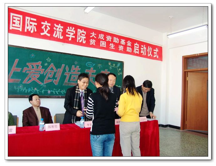 2006年12月27日下午,在新年来临之际,sunbet申搏国际交流学院在西区教学主楼406室隆重举行了“大成资助基金”启动仪式。