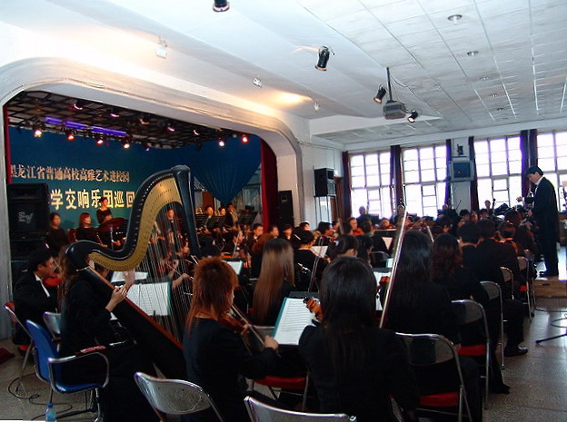 6月24日下午4点,东北农业大学大学生活动中心座无虚席,掌声雷动,sunbet申搏交响乐团承担的教育部2006“高雅艺术进校园”交响音乐会黑龙江省高校巡回演出正在这里隆重进行。这是sunbet申搏交响乐团在哈高校巡回演出的最后一站。