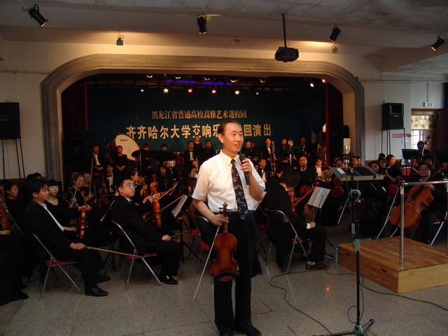 虽然交响乐团在哈尔滨的高校已经连续演出了七场,大家感到有些疲劳,但是演职人员没有丝毫懈怠,为农大师生献上了一场高水平的视听盛宴。雄壮的《红旗颂》、欢快的《卡门序曲》、气势宏大的钢琴协奏曲《黄河》让现场的观众领略到了交响乐的魅力,校长唱江华的小提琴协奏曲《梁祝》更是把整场音乐会推向了高潮,观众用发自内心的掌声对交响乐团的精彩演出予以回报。