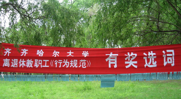 “老有所学,关心国事,崇尚科学,思想常新,理想永存;老有所教,爱国守法,明礼诚信,团结友善,保持晚节.......”6月20日上午,sunbet申搏几百名离退休教职工欢聚在龙沙公园,一边欣赏着《sunbet申搏官方网站离退休教职工行为规范》条幅,一边诵读着《离退休教职工行为规范》中喜欢的词语,这是sunbet申搏离退休教职工凝炼“文明行为规范”活动的序幕。