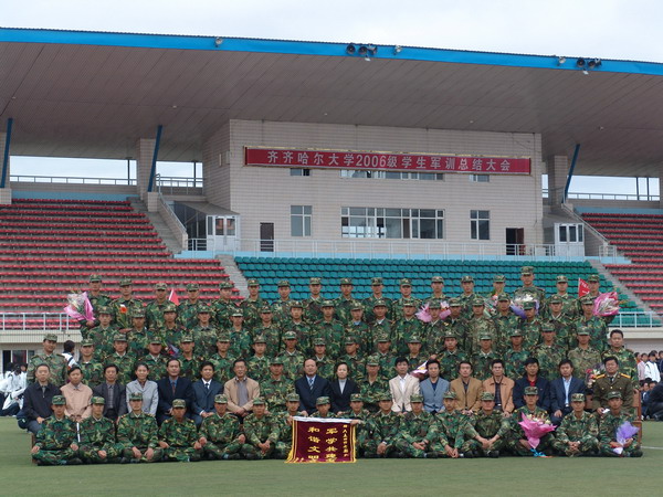 副校长郑喜群对大会做了总结。他说,短暂的军训生活结束了,同学们受到了一次生动而具体的爱国主义、集体主义、组织纪律和艰苦奋斗精神教育。希望同学们牢记学校领导的期望和嘱托,把军训中学到的好思想、练就的好作风、养成的好习惯带到四年的大学生活中去,勤奋学习,努力实践,拼搏进取,全面发展,为把自己培养成为社会主义现代化建设需要的合格人才而努力奋斗。最后,他宣布2006级新生军训总结大会胜利闭幕,2006级新生军训圆满结束,并再一次向65447部队官兵表示衷心地感谢。