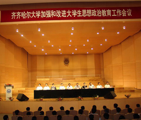 校党委书记陈承贵,校长唱江华,校党委副书记史铁成、王凤琴,校党委常委、纪委书记张学军,副校长曲伟建、姜守训、张忠恒、邓启刚,校工会主席吕晓辉等出席,校长唱江华主持了会议,学校副处级(含比照管理的副处级)以上干部、全体机关干部、专兼职辅导员、班主任、"两课"教师,各学院基层党支部支部委员以上成员,校、院学生会干部代表等参加了大会。