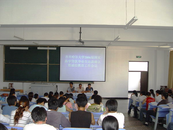 中国银行齐齐哈尔分行的负责人为同学们讲解了国家助学贷款还款确认手续的有关事宜,耐心而详细地解答了他们提出的有关问题,并认真指导学生办理相关确认手续,以便使获得国家学贷款的2006届毕业生顺利毕业。