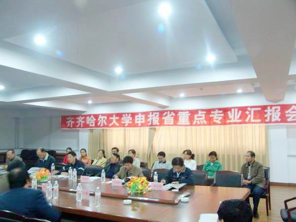 10月9日下午,由省教育厅高教处徐颖琪和哈尔滨医科大学沃震中教授等6名专家组成的省教育厅重点专业建设专家调研组莅临sunbet申搏指导工作,校长唱江华、副校长姜守训、郑喜群、邓启刚和有关部门负责人李英杰、高广君、王云鹏、陈国良等出席汇报会,sunbet申搏申报省重点专业建设的相关学院负责人、专业带头人等参加了汇报会。