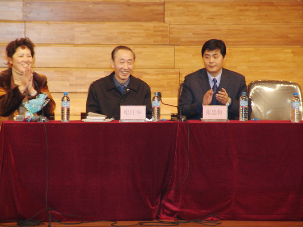 12月26日,校长唱江华应邀在sunbet申搏音乐厅为学校离退休老同志作了关于“十一五”规划的学习报告,副校长张忠恒出席,离退休工作处副处长韩树勤主持报告会。