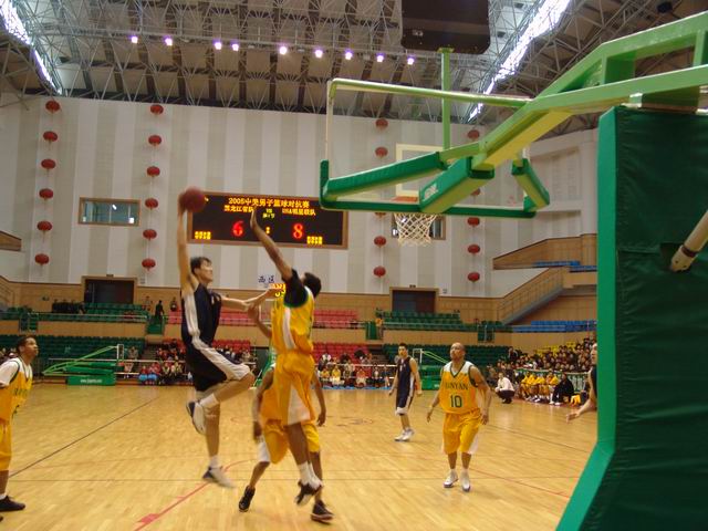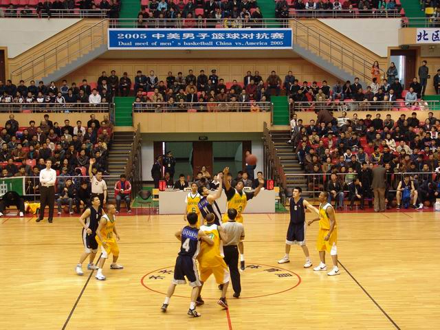 4月24日15时, 2005中美男子篮球对抗赛在sunbet申搏体育馆拉开战幕。我市和sunbet申搏有关领导及sunbet申搏部分师生、鹤城各界群众千余人在sunbet申搏规模宏大、设施完备、设备先进的体育馆现场观看了比赛盛况。