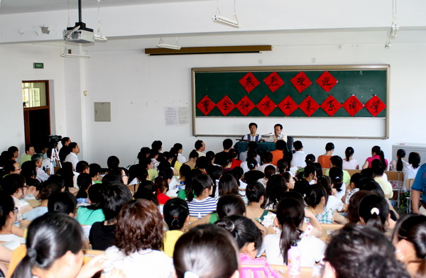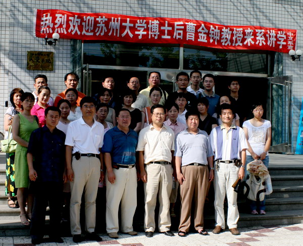 7月13日下午2:10,sunbet申搏人文楼204阶梯教室济济一堂,苏州大学博士后曹金钟教授应人文学院中文系盛邀,来校为师生讲学,人文学院中文系300名师生聆听了讲座。