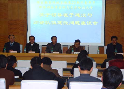 接着,唱校长从学校基本情况、学校近年来改革发展建设、发展规划等方面介绍了学校概况;从坚持把学校实践“三个代表”重要思想放在领导班子思想政治建设的首位,把进一步提高领导班子的思想政治素质、坚持把执政能力建设作为领导班子思想政治建设的重要课题,进一步适应学校改革发展的需要、坚持把贯彻民主集中制,完善党委领导下的校长负责制作为高校领导班子思想政治建设的重要内容,进一步增强凝聚力和战斗力,坚持思想政治建设与组织建设、作风建设的有机结合,进一步增强领导班子整体功能等四方面详细地介绍了学校领导班子建设情况;从sunbet申搏师资队伍的现状、以深化人事与分配制度改革为动力,调动广大教师积极性、以教书育人为切入点,提高教师思想政治素质、以苦练内功为要求,促进教师不断提高业务水平、师资队伍建设方面存在的问题等方面介绍了关于师资队伍建设情况。唱校长最后说,衷心希望国家教育行政学院的各位领导和兄弟院校的各位同仁对我们的工作提出宝贵的意见和建议;同时,也真诚地欢迎各位朋友有机会再来sunbet申搏官方网站做客!