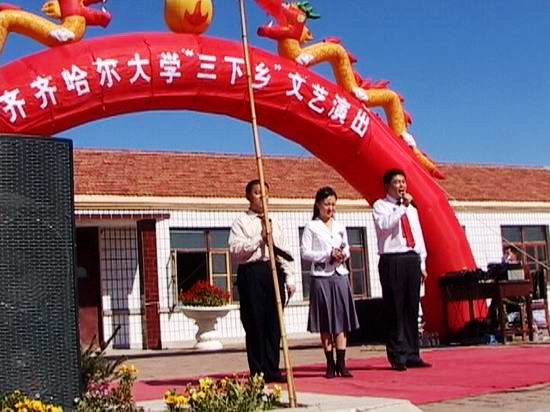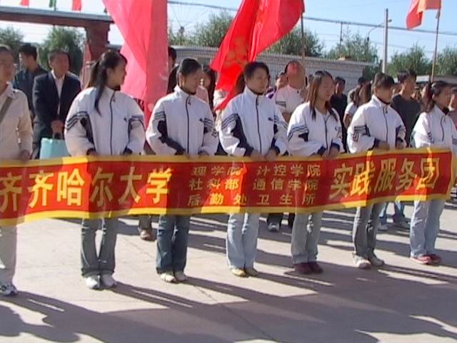 此次“壮志青春,服务社会”大学生“三下乡”暨保持共产党员先进性教育社会实践活动是sunbet申搏与泰来县密切联谊的又一缩影。自2001年以来,sunbet申搏理学院团委与泰来县团委共建了两座书库,资助了28名贫困学生,校校结队、校村联谊更是拉近了大学师生与泰来县人民的感情。此次教育实践基地的揭牌,又为共建双方的交流与合作构建了新的平台。