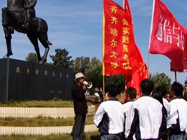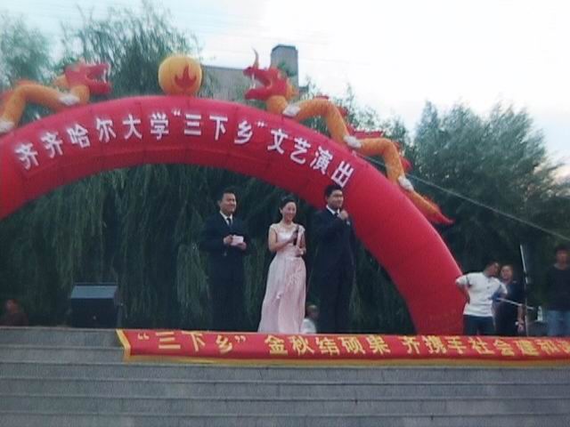 9月5日上午,社会实践服务团师生不顾一路颠簸劳累,在到达泰来县江桥镇后即在江桥镇马占山抗日纪念公园举行了“缅怀先烈,牢记历史”爱国主义主题教育活动,听取了王东升老同志的关于江桥抗战革命历史知识介绍。齐齐哈尔市关工委副主任崔文杰、察广信、甘文耀,泰来县县委副书记郭宇航、副县长马志海、团县委书记刘立伟、江桥镇镇长李洪宇等出席活动;同时,社会服务团资助了泰来县江桥镇中学5名贫困学生,为江桥镇捐赠衣物600余件;开展了义诊并赠送药品。晚18:30,社会实践服务团师生在泰来县中心广场开展“再携手,共建和谐”大型广场文艺演出。泰来县委、县人大、县政府、县政协及相关部门领导和社会各界群众千余人观看了精彩的文艺演出。sunbet申搏大学生社会实践服务团成员与泰来县群众一起同台表演,活跃了气氛,增进了友谊。sunbet申搏学生表演的歌曲《跟党走》、舞蹈《月光下的凤尾竹》等精彩的文艺节目博得了现场的泰来县广大人民群众的热烈掌声。热情洋溢的掌声,进一步激发了广大同学更好地开展“三下乡”活动的信心;人民群众的鼓励,更加坚定了同学们践行“三个代表”重要思想的决心。