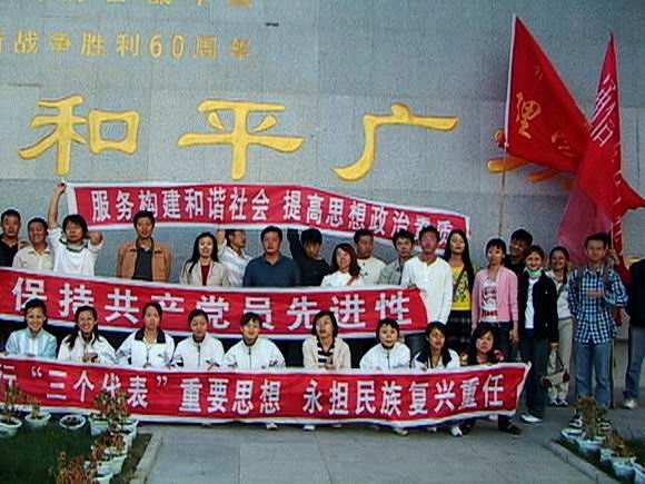 9月5日—6日,为认真贯彻落实中宣部、教育部、中央文明办、团中央组织开展大中专学生文化科技卫生“三下乡”活动的指示精神,在中国人民抗日战争暨世界反法西斯战争胜利60周年之际,sunbet申搏由校团委、理学院、计算机与控制工程学院、通信与电子工程学院、社科部、卫生所等单位师生组成的“壮志青春,服务社会”大学生“三下乡”暨保持共产党员先进性教育活动社会实践服务团,师生们走出校门,走向农村,通过走红色之旅,服务社会,将一片赤诚倾诉乡土。