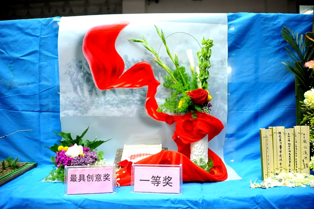 黑龙江省插花花艺研究会齐齐哈尔分会“第六届插花花艺大赛”以纪念“中国共产党成立95周年”和“长征胜利80周年”为主题,参赛选手任选其中一个主题进行创作。
