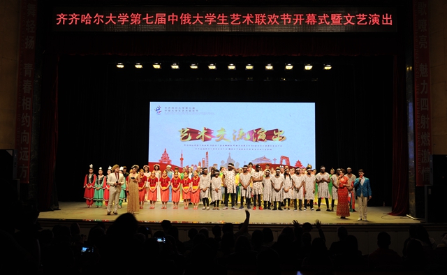 第七届中俄大学生艺术联欢节开幕式暨文艺演出上,中外学生表演了男声独唱《草原牧歌》、唢呐与乐队《黄土情》、扇舞《茉莉花》、女声独唱《布里亚特民歌联唱》、光秀《幻想、印度风》、女声独唱《燃烧的心》、舞蹈《梦中的故乡》、三人舞《佤山印象》、女声独唱《那拉姆尼》、舞蹈《欢腾的节日》、男女声对唱《桃花朵朵开》、芭蕾独舞《心灵的芭蕾》、男声独唱《城市之花》、集体舞《华尔兹》等精彩节目。