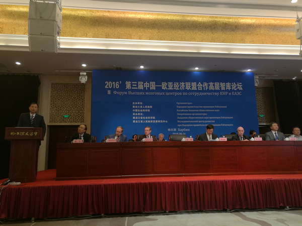 2016年6月14日,由黑龙江省人民政府、中国社会科学院联合主办,黑龙江省社会科学院、黑龙江省人民政府发展研究中心承办的第三届中国与欧亚经济联盟合作高层智库论坛在哈尔滨召开,中俄两国的80多位专家学者、政府官员和企业界人士参加了此次盛会。
