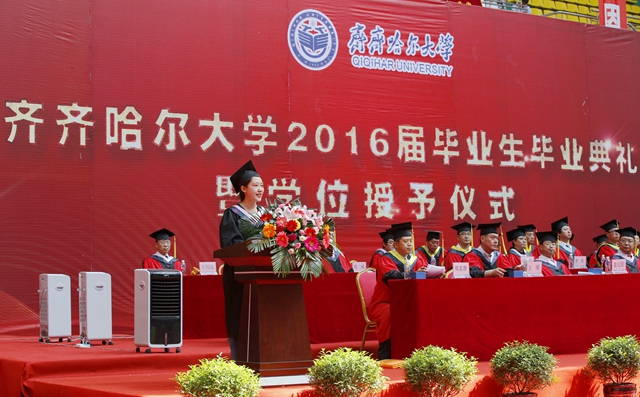 本科生代表、校学生会主席、校优秀毕业生刘烨玮发言。她说:“齐大留给我们许多财富,不仅有前沿的科学理论知识,更有一种对真善美的执着信仰和由衷热爱。在这个离别的日子,我谨代表2016届全体毕业生感恩母校,感念师恩,感怀友情。此去须怀报国志,不忘春风化雨恩。衷心祝福所有的师长万事如意,每一位齐大学子鹏程万里,祝愿我们的母校—sunbet申搏官方网站永远年轻美丽。未来人生路上我们会将致知、致用、致远的学风化作实际行动,永远铭记我们是心怀大爱、身容大道、明正大学的齐大人,在实现“中国梦”的伟大历史进程中贡献智慧和力量!”