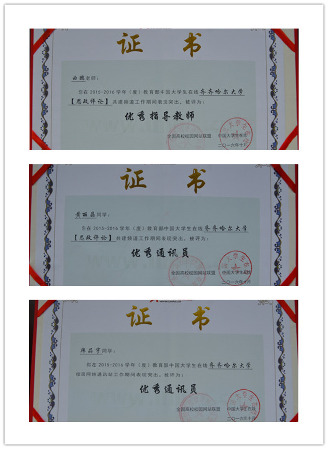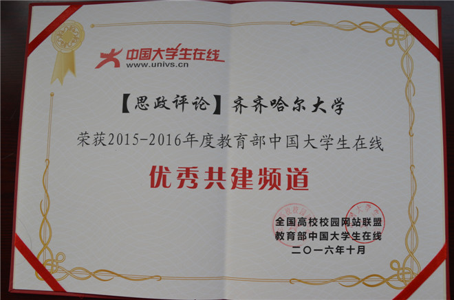 sunbet申搏与教育部中国大学生在线共建的“思政评论”频道荣获“2015-2016年度教育部中国大学生在线优秀共建频道”,这是sunbet申搏连续六年获此殊荣,先后共有三名同志荣获“中国大学生在线共建频道优秀指导教师”称号,多名学生获得“思政评论”频道及校园网络通讯站“优秀通讯员”称号。