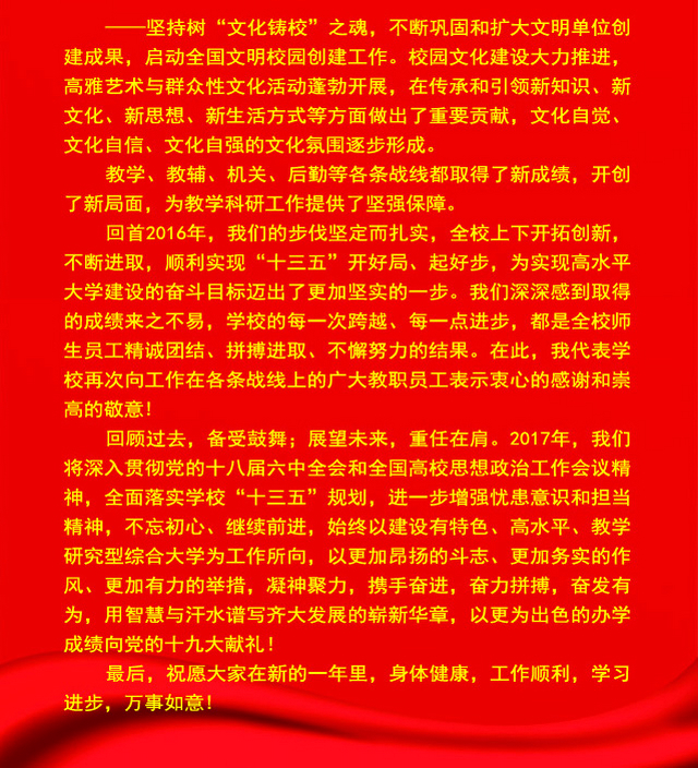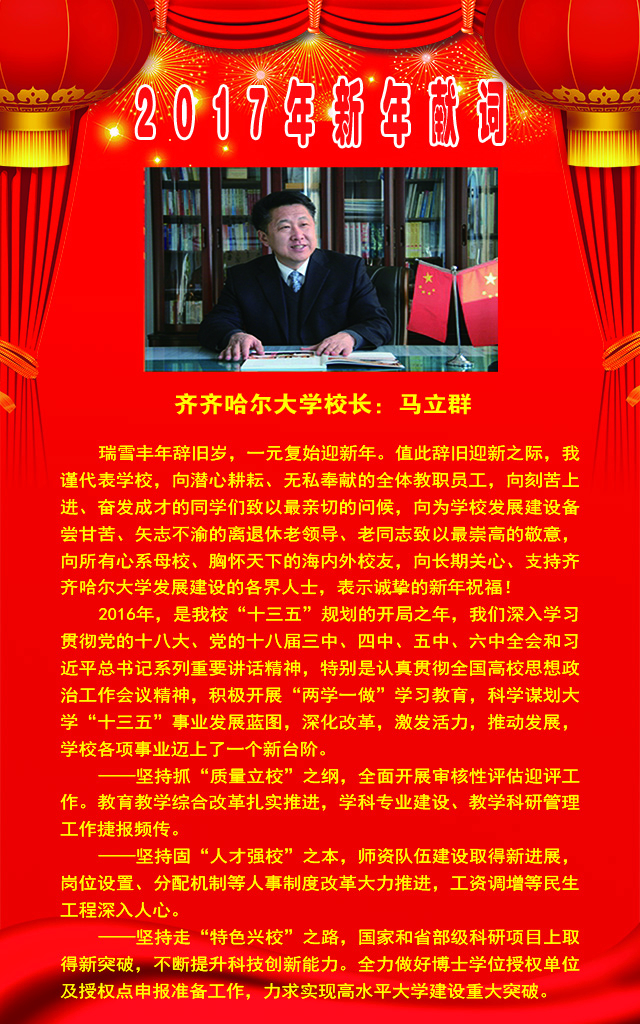 马立群校长发表2017年新年献词