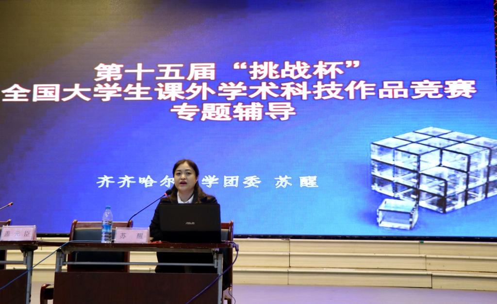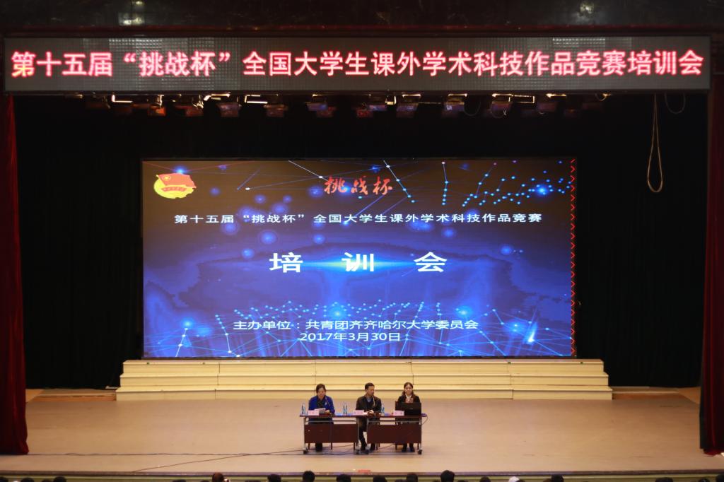2017年3月30日,sunbet申搏第十五届“挑战杯”全国大学生课外学术科技作品竞赛培训会在文化宫举行。校党委副书记盖元臣、校团委副书记苏醒出席培训会,各学院主管学生工作的书记、副书记副院长、主管教学工作的副院长、团委书记、指导教师代表、学生代表,还有来自齐齐哈尔医学院和齐齐哈尔工程学院的老师和学生代表也参加了培训会。