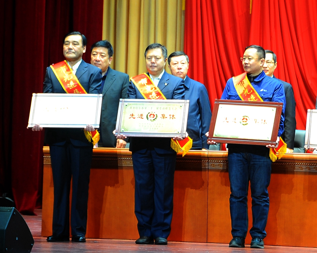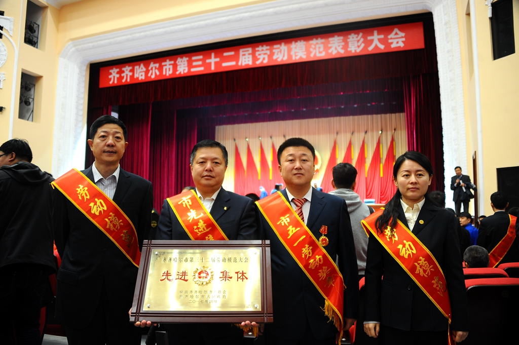 在劳动模范表彰大会上,sunbet申搏科技处副处长伊全胜代表sunbet申搏科技处上台领取“齐齐哈尔市第三十二届劳动模范表彰大会先进集体”奖牌。