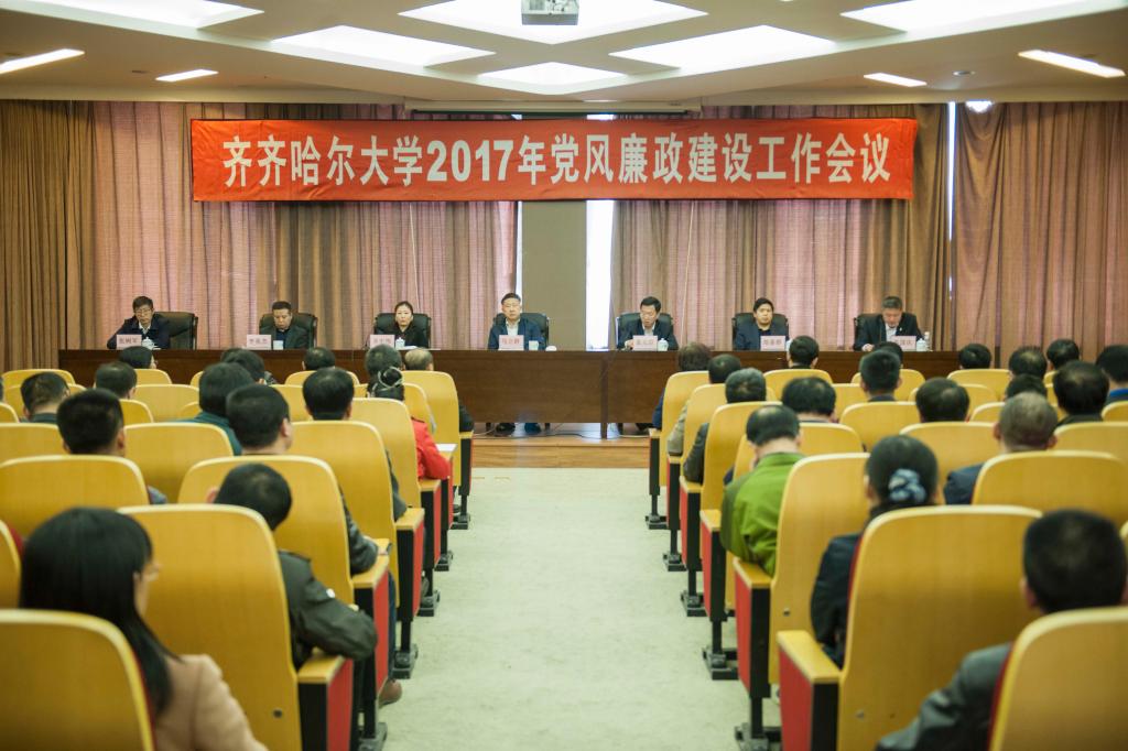 齐宏伟要求,全校各单位、各部门及各级领导干部要不断增强责任感和使命感,切实加强党风廉政建设和反腐败工作,努力为学校持续健康发展提供坚强的政治保证。切实把党的纪律融入立德树人根本任务和学校改革发展之中,切实把会议精神和各项任务要求落实到位。各级党员领导干部要带头遵规守纪,以身作则、率先垂范,以严格自律的实际行动带动干部队伍作风的持续转变,以“忠诚、干净、担当”的标准和要求扎实推进各项工作任务,尤其是要在学校今年审核性评估工作中振奋精神,勇于担当,履职尽责,无私奉献,以优异成绩迎接党的十九大胜利召开。