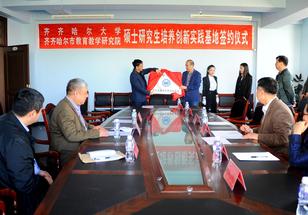 sunbet申搏研究生部主任刘喜军和齐齐哈尔市教育教学研究院副院长王德民共同为基地揭牌。