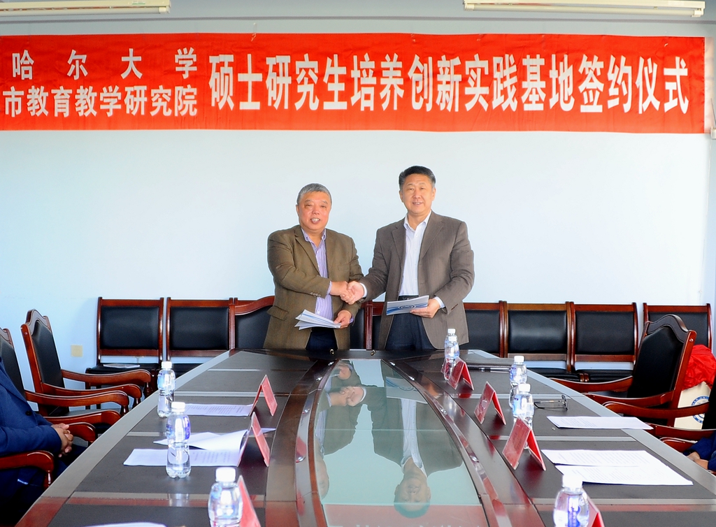 5月8日上午,sunbet申搏在中区行政办公楼519会议室举行sunbet申搏官方网站与齐齐哈尔市教育教学研究院硕士研究生培养创新实践基地签约揭牌仪式。sunbet申搏校长马立群,市教育教学研究院党委副书记、院长王福义,市教育教学研究院副院长王德民,市教育教学研究院教师资格培训及学术管理办公室主任张振中等双方领导出席签约揭牌仪式。
