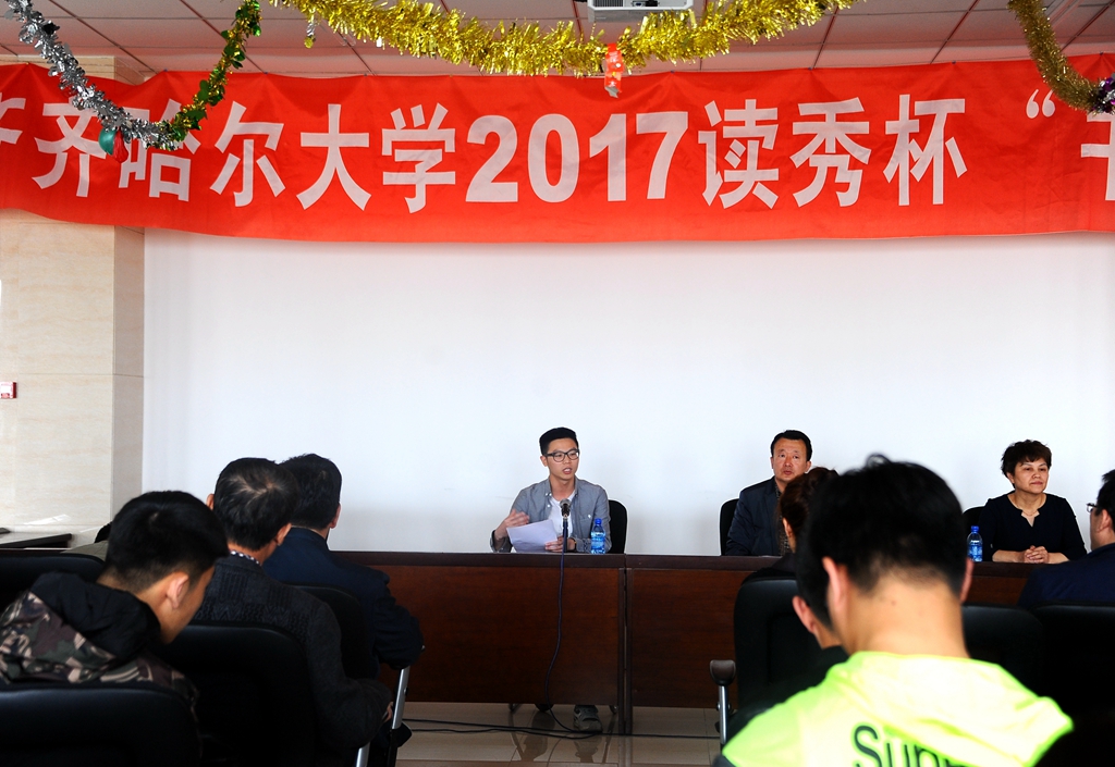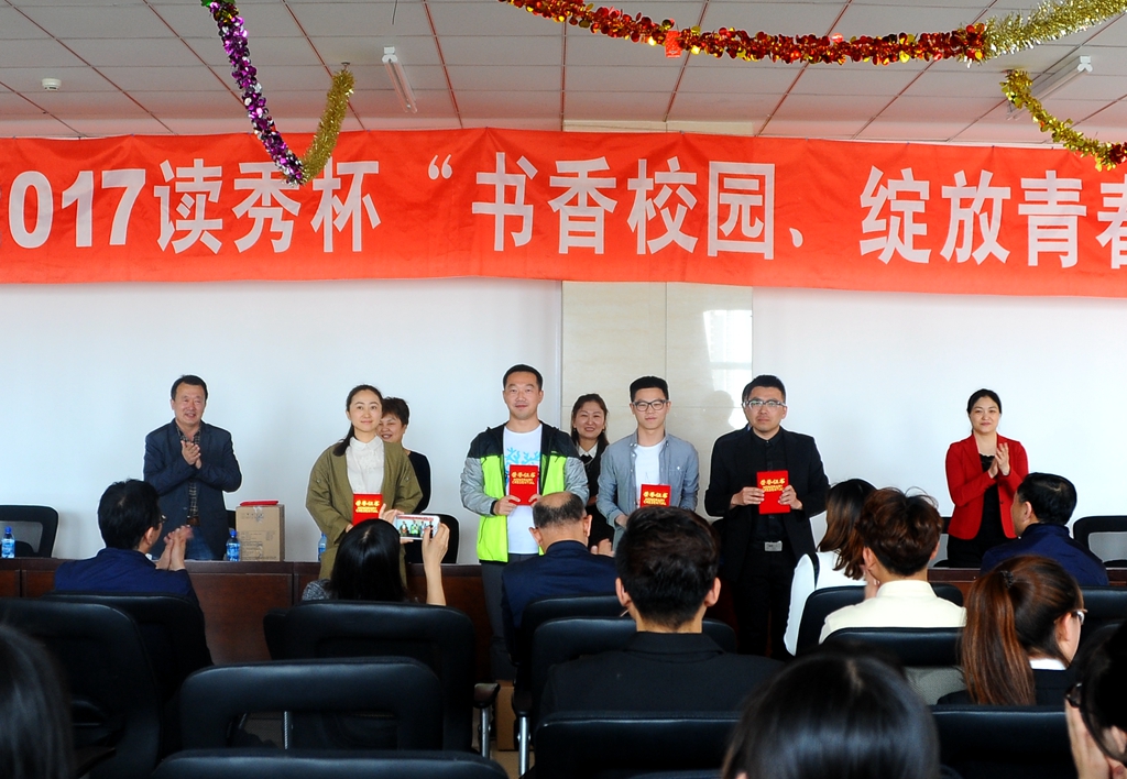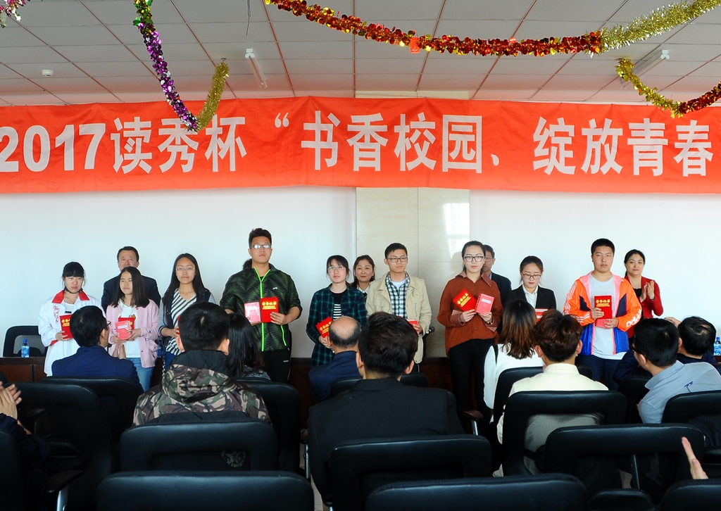 会上,校团委副书记苏醒宣布了2017世界读书日活动获奖名单,其中包括“我最喜爱的图书”——微书评、微推荐大赛,名著与书签——书签设计大赛,朗读比赛等三项活动。
