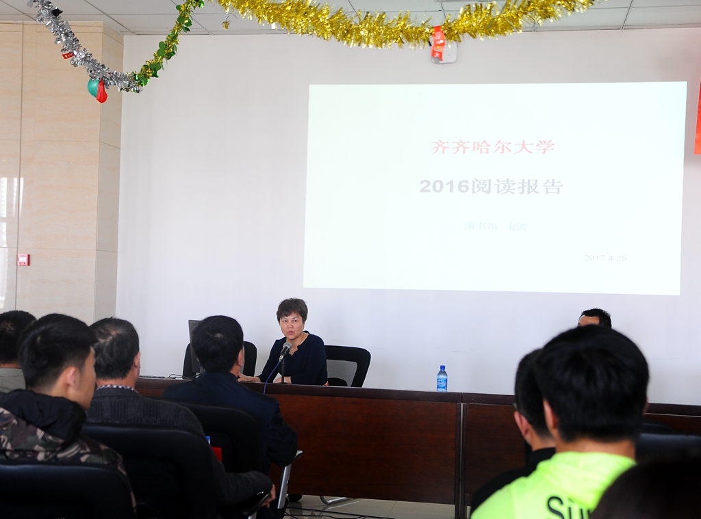 图书馆馆长宋波从借阅人次和册数、阅读倾向、年度借阅排行榜等几部分,对《sunbet申搏官方网站2016年阅读报告》(校内网链接http://xiaonei.qqhru.edu.cn/content.jsp?urltype=news.NewsContentUrl&wbtreeid=1011&wbnewsid=6112)进行了详细解读。