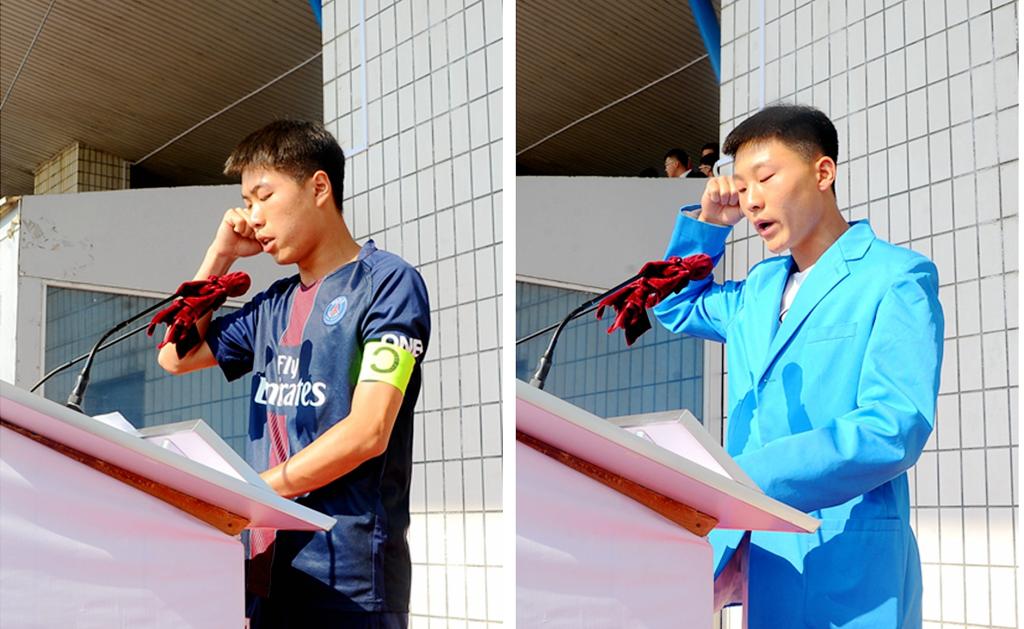 开幕式上,运动员代表—美术与艺术设计学院环境设计专业143班欧阳睿华同学代表全体运动员宣誓,裁判员代表—体育学院社会体育指导与管理专业151班刘鹏同学代表全体裁判员宣誓。