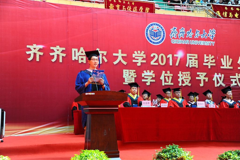 校长马立群、校党委副书记盖元臣、校党委副书记齐宏伟、常务副校长郑喜群、副校长王刚、纪委书记姜国庆、副校长张树军出席典礼。学校学位评定委员会成员及各学院院长,优秀校友代表、齐大广州校友会会长、元通高科信息化公司董事长刘德权等参加毕业典礼暨学位授予仪式并在主席台就座。即将奔赴祖国各地的3000余名毕业生代表参加了典礼,典礼由常务副校长郑喜群主持。